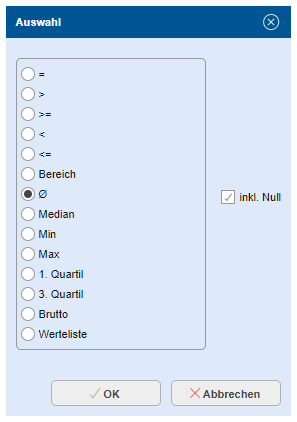 | Durchschnitt Ø | kann entweder inklusive Null oder exklusive Null berechnet werden. |