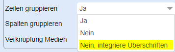 Zeilen gruppieren: Nein, integrierte Überschriften