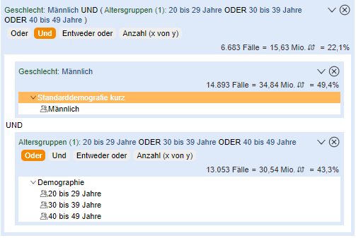 Zusammengesetzte Zielgruppen aus verschiedenen Merkmalen werden über geschachtelte Zielgruppenboxen ermöglicht.