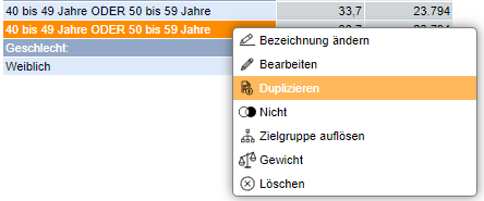 Über die Auswahl im Menü der rechten Maustaste kann eine markierte Zeile oder Spalte wiederholt eingefügt werden.