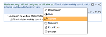 Die Gewichtung lässt sich über das Mausmenü aufrufen: Mit der rechten Maustaste auf die Überschrift des zu gewichtenden Merkmals klicken.