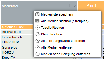 Löscht alle Medien (Zeilen) aus dem Streuplan.