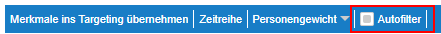Im unteren Beispiel bewirkt die Aktivierung des Autofilters, dass die Merkmale Duftwasser – Männer und Pflegende Gesichtskosmetik -netto jeweils unter Filter gezählt werden.