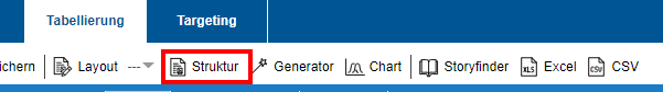 Das Funktion Struktur ermöglicht, schnell und komfortabel umfangreiche Tabellen zu erzeugen und zu bearbeiten. Vorspalte und Tabellenkopf sind als vertikale Strukturen angelegt und können direkt aus dem Codeplan heraus per Drag & Drop befüllt werden.