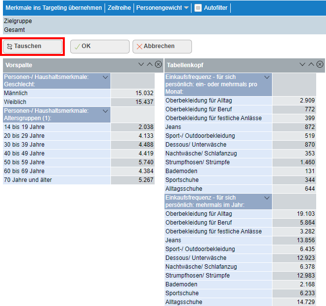 Über den Button Tauschen werden Vorspalte und Tabellenkopf insgesamt getauscht.