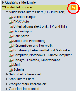 Damit können entweder Merkmale mit allen Kategorien oder eine Kategorie mit allen Merkmalen ausgewählt werden.